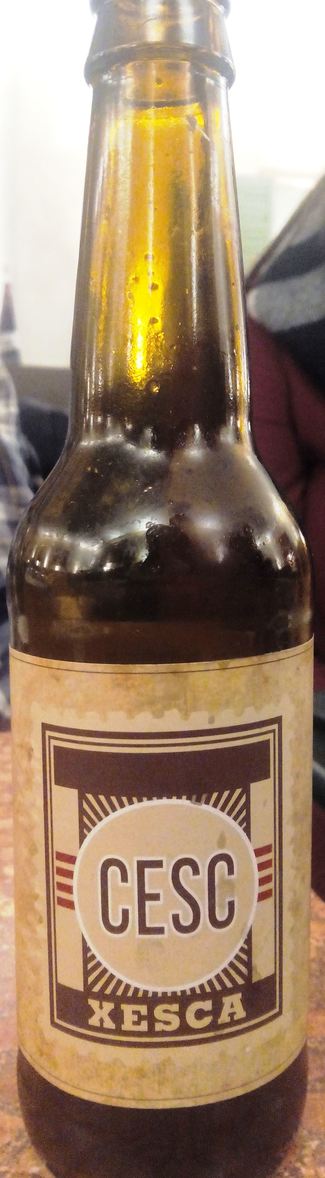 Ambre fosc. Tèrbola. Escuma blanca escasa, tot i que persistent.