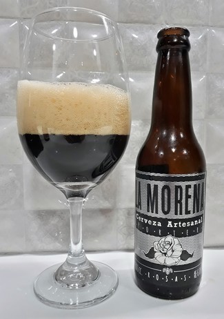 Y vamos con la segunda de las cervezas que elabora esta marca. Se trata de una cerveza estilo porter macerada con pétalos de rosas orgánicos. Se presenta en un botellín marrón oscuro con una etiqueta que juega con fondo y letras en blancos y negros en donde el nombre aparece en grandes letras y una ilustración de unas rosas nos anticipa información sobre su elaboración. Servimos a 8°C: