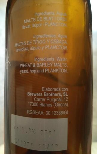 Cerveza hecha con plancton en colaboración con el Chef Toni Romero del Restaurante Racó d'en Cesc (Barcelona).