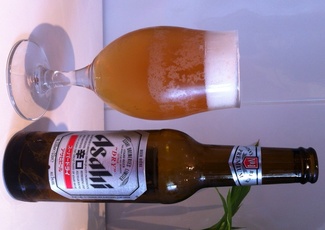 Asahi, cerveza japonesa de color amarillo oro y espuma blanca, ligera en nariz con notas de cebada y refrescante en boca, con fina burbuja y un final seco y amargo que la hace adictiva. No esta mal.