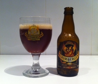 Botella chata típica de las Grimbergen, en vidrio marrón. La etiqueta, sin demasiada información, es similar al resto de variedades, con su ave Fénix como protagonista, en esta ocasión predominando los tonos marrones y amarillos.