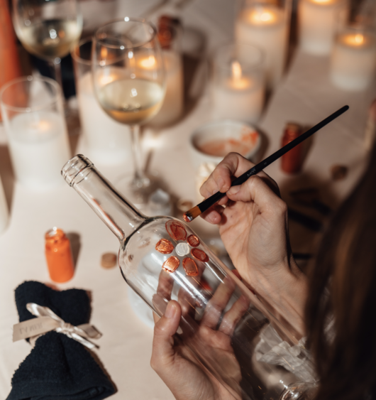 Vive una experiencia creativa y divertida; ideal para compartir en grupo con familia, amigos y equipos de trabajo. Durante el taller, disfrutarán de una selección de vinos de nuestra bodega mientras crean su propia obra de arte.