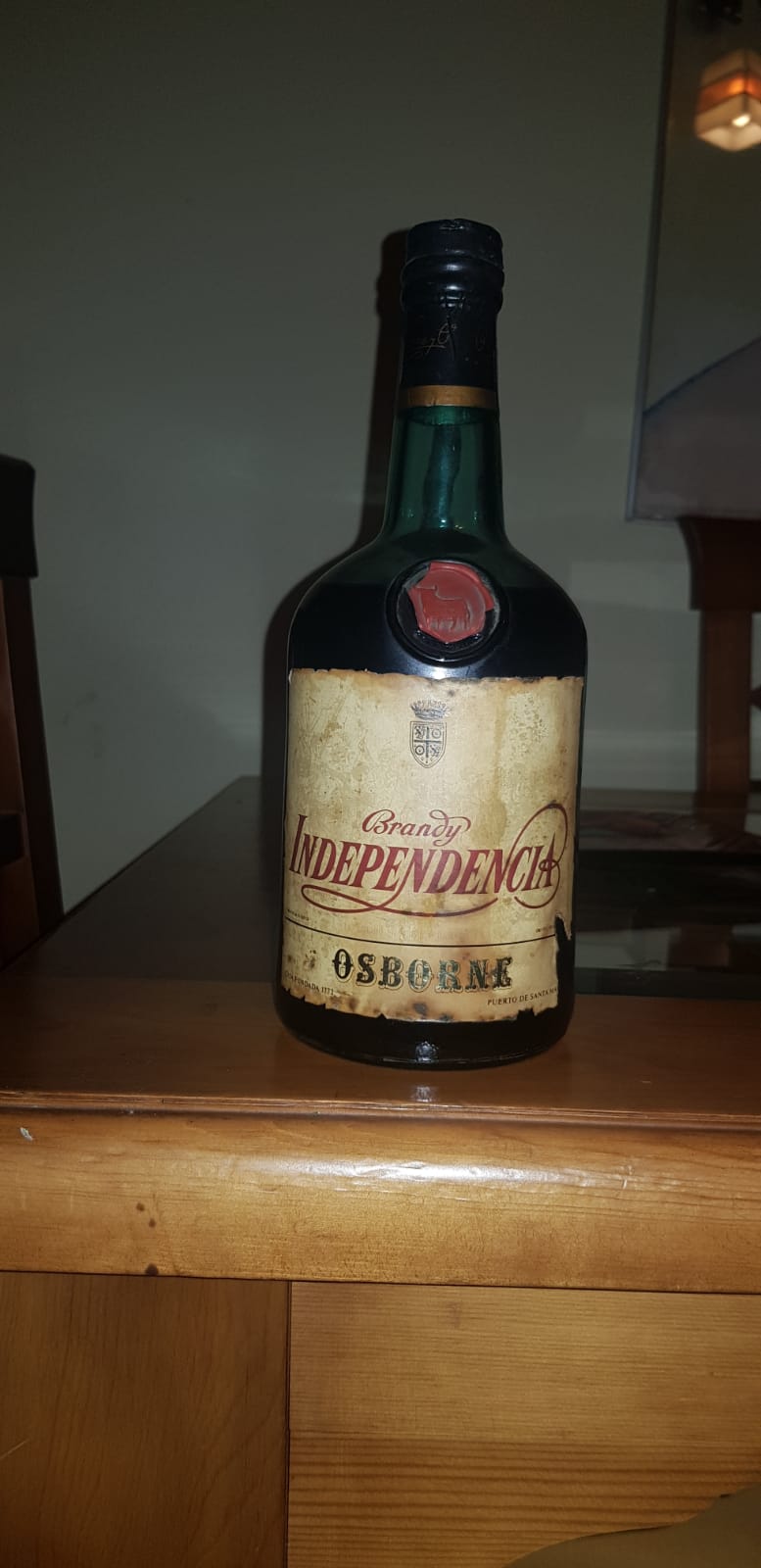 Poseo una botella de Brandy Independencia de Bodega Osborne, adjunto foto. No sé decirles de qué año es, no soy ninguna experta, solo sé que a mi padre se la regalaron en 1980 y ya tenía muchos años. Podrían por favor orientarme, e indicarme que valor tiene. Tambien tengo 2 botellas de edion limitada firma Dali.