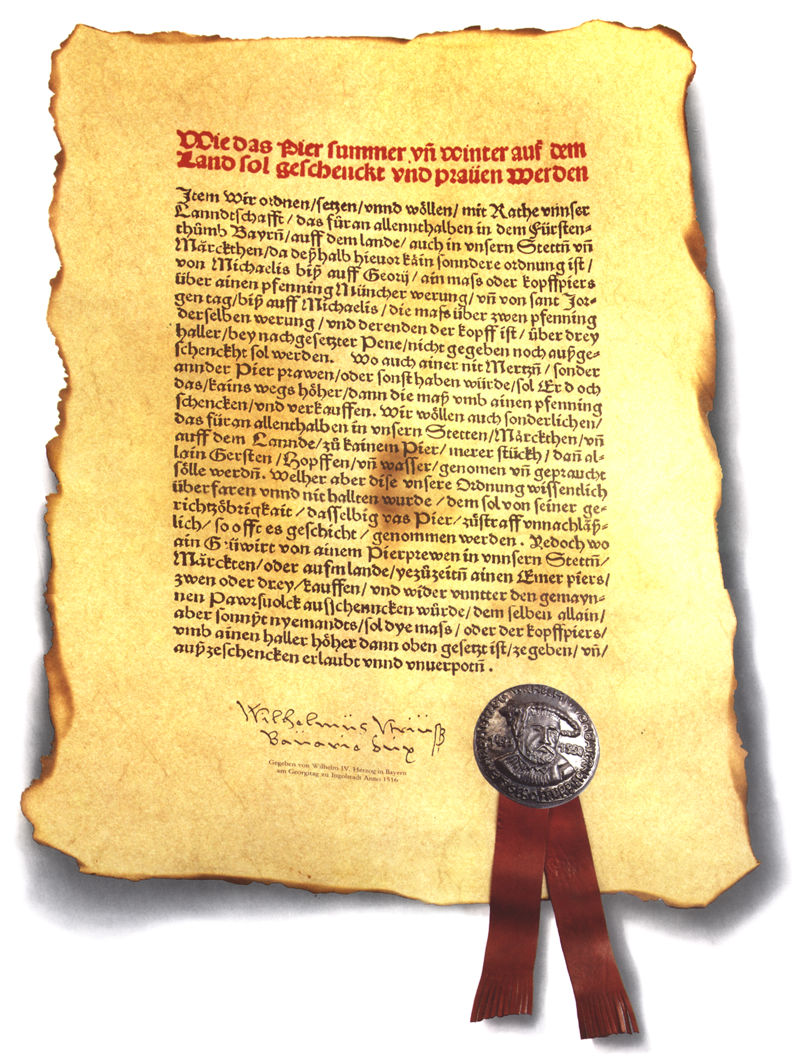 Hoy, 23 de abril de 2016, además de ser el IV Centenario de la muerte de Cervantes, se conmemora otro centenario para los amantes de la buena cerveza. La Ley de la pureza (Reinheitsgebot en alemán) fue decretada el 23 de abril de 1516 por Guillermo IV de Baviera. Se establecía que la cerveza solamente se debía elaborar a partir de tres ingredientes: agua, cebada malteada y lúpulo. Se cree que es la primera regulación legal de un alimento. Ya antes existían algunas regulaciones sobre la cerveza como la de Augsburgo en 1156, Núremberg en 1293, Weimar en 1348, Weiβenseeen en 1434 o Múnich en 1363. Pero no fue hasta el 23 de abril del año 1516 cuando se promulgó el conocido Reinheitsgebot como se conoce hoy en día. Fuente: portalalemaniaSoy flexicarnívoro y a la comida vegana la llamo guarnición