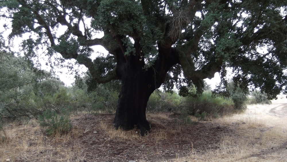 Ahí van unas fotos de algunos alcornoques de mi pueblo, que si no fuera por este aprovechamiento no presentarían este aspecto.