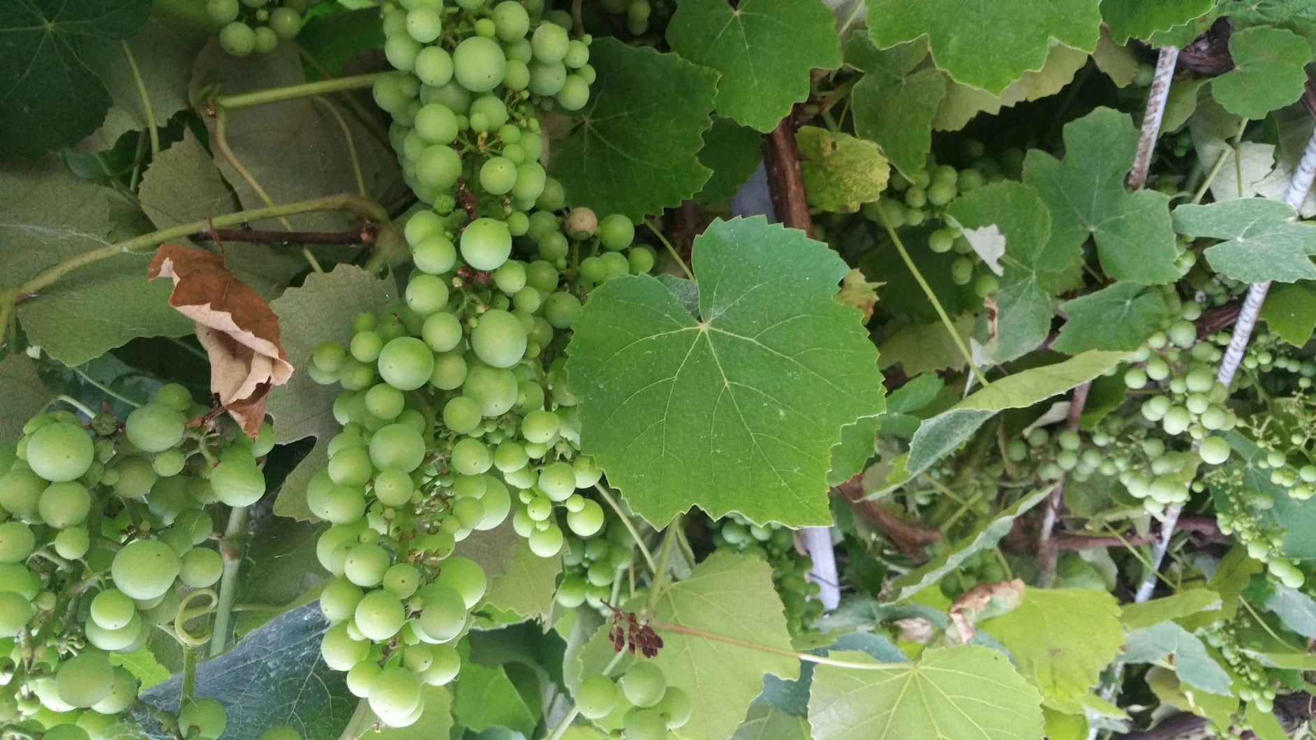 Por otro lado tengo curiosidad por una vid que tiene mi padre desde hace unos 20 años, de la que lo único que sé es que da uva de color oscuro, que este año han empezado a cuajar a finales de junio y que suelen madurar y coger color sobre septiembre-octubre. Os dejo una imagen de cómo están ahora y otra de cuando cogen color del año pasado.