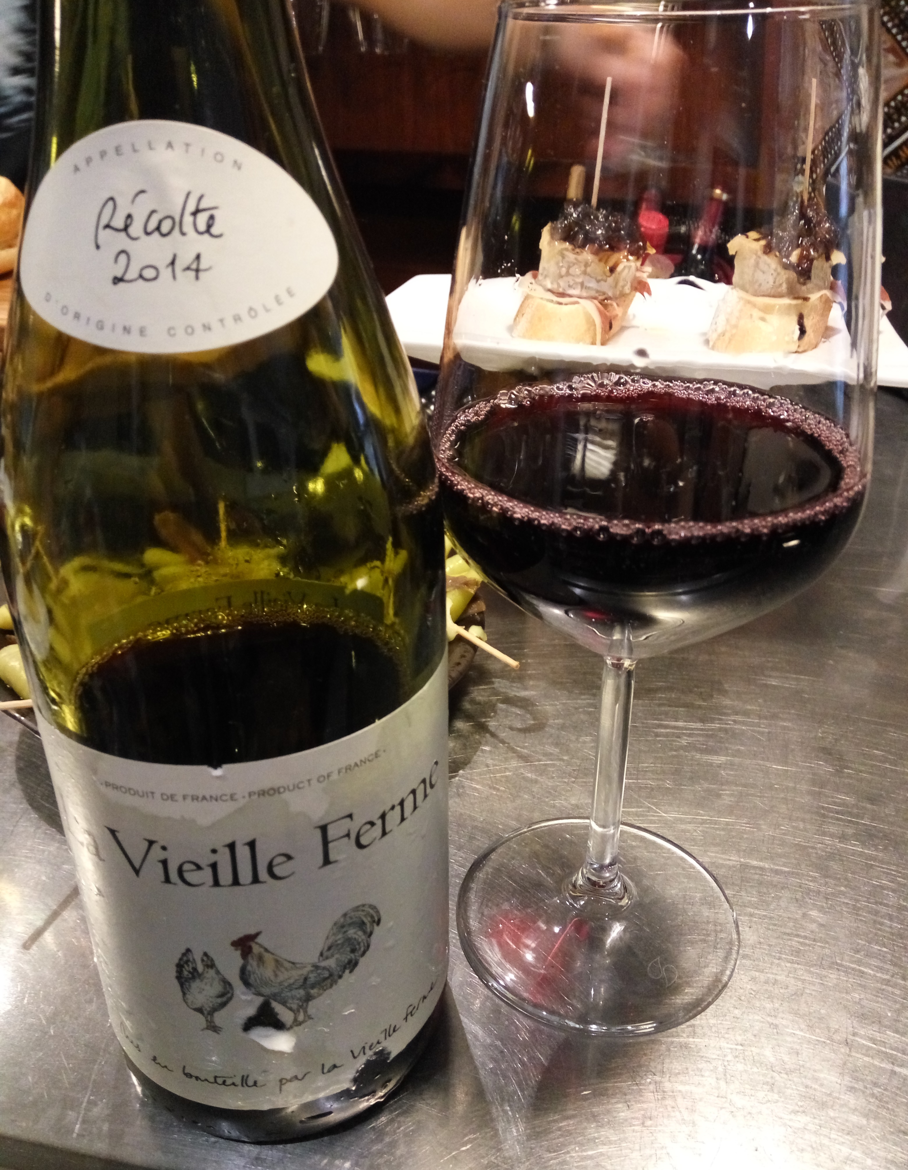 - La vieille ferme 2014: Un Ródano curioso, ya que aparece fruta por un tubo servido frío y con el aumento de Tª esta queda algo tapada por el alcohol. Aún así, buen vino de chateo y más por su precio (sobre los 8€)