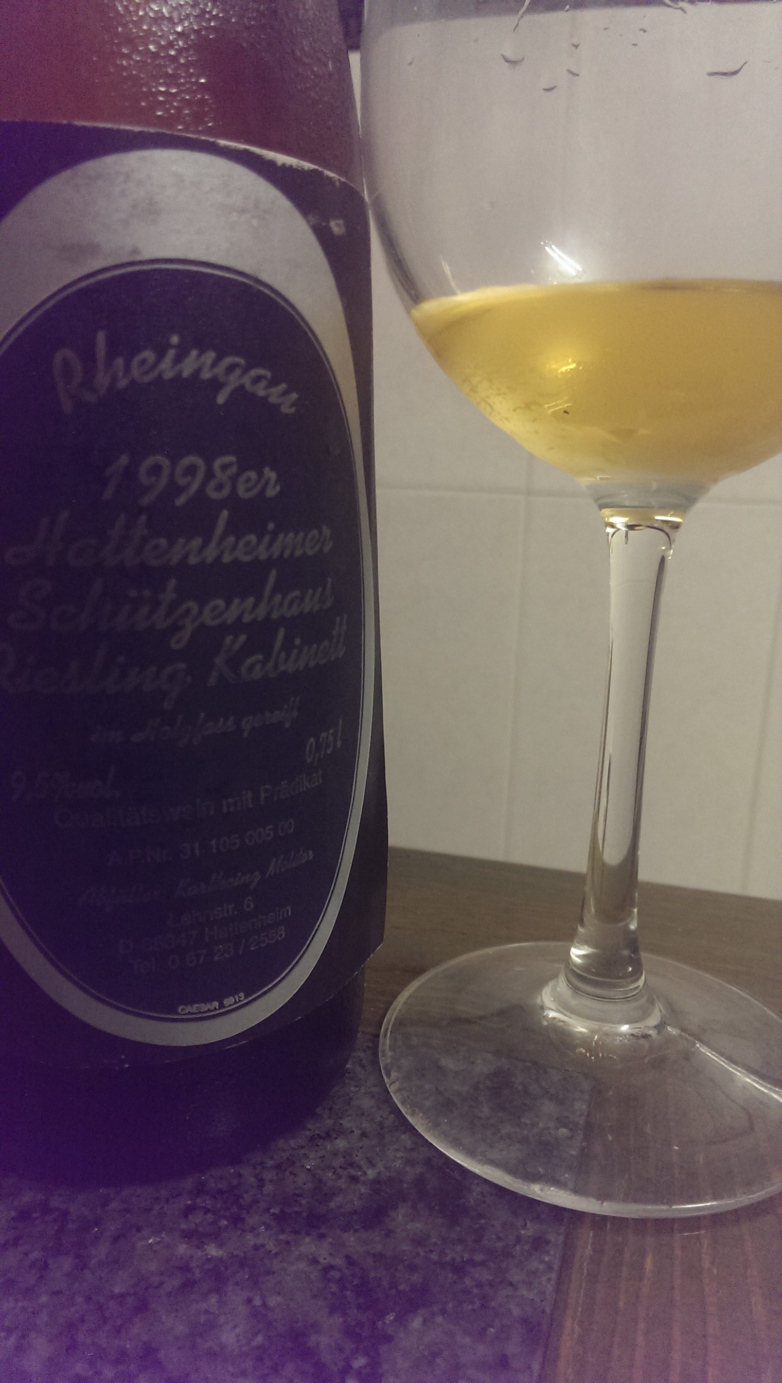 Mira el corcho de la botella de riesling de esta noche. Año 1998, un kabinett de infarto