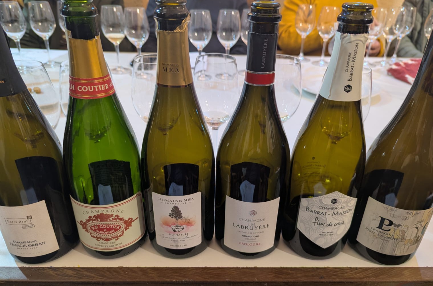 Destacaron los dos últimos, la mineralidad del Barrat Masson me pareció pura tiza en nariz y en boca y eso me encanta. El Paul Launois, a parte de una etiqueta preciosa, me emocionó por su acidez y proyección, tuve la sensación de que era un vino immortal de Mesnil sur Oger en la prestigiosa Côte des Blancs.