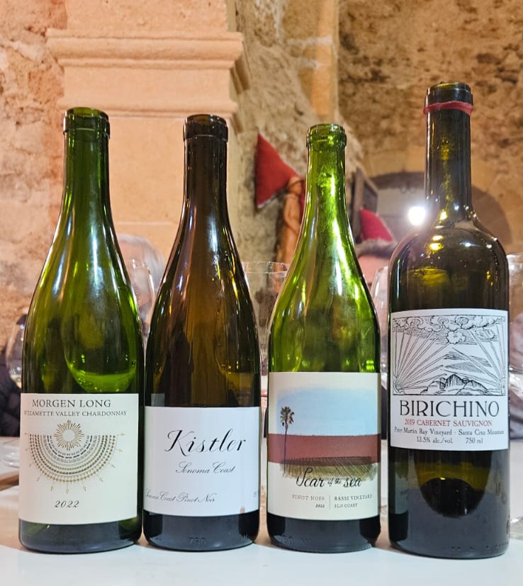 Luego tuvimos dos pinot noirs, Kistler Sonoma Coast Pinot Noir 2022 y Scar of the Sea Bassi Vineyard Pinot Noir 2022, en geneal identificamos la variedad a ciegas por sus frutillas rojas, sus violetas pero nos faltaban las notas terrosas y el trasfondo de hongo que me suelen ayudar a ubicarlas; personalmente continué con la idea de Borgoña por su ligereza y sutilidad pero finalmente fueron estadounidenses. El Scar of the Sea fue el que más me gustó personalmente, fue el vino más económico, siempre es interesante catar a ciegas.