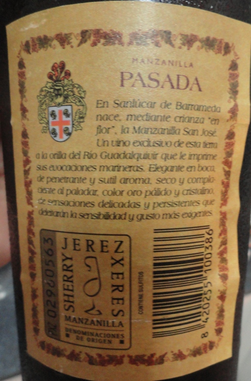La manzanilla San José me gusto mucho, en la linea de la Pasada de la misma casa, además servida a su temperatura, no como en muchos bares de la zona que al parecer le han hecho caso al Ministro de Industria y le han quitado las corbatas a sus neveras para ahorrar mas en energia, una pena pues ponen algunas veces el vino excesivamente caliente, que le vamos a hacer.