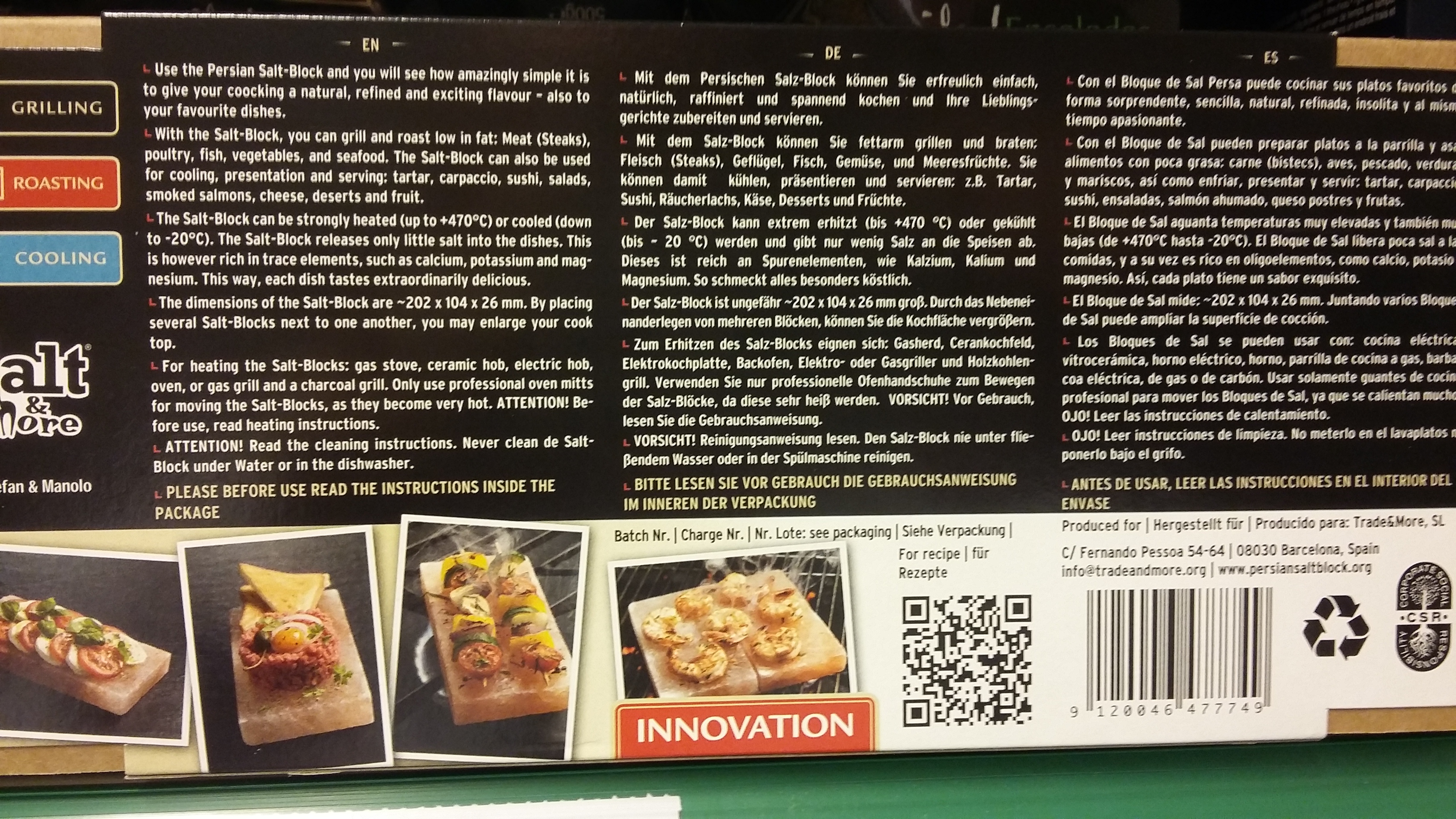 Para mi es totalmente nuevo, qué le vamos a hacer. Pero si alguno lo conoce y sobre todo, lo ha usado, que explique sus propiedades, pues vale tanto para presentaciones en frío como para asar u hornear sobre él. Entiendo pues que no necesita de sal nada que se ponga sobre esto.