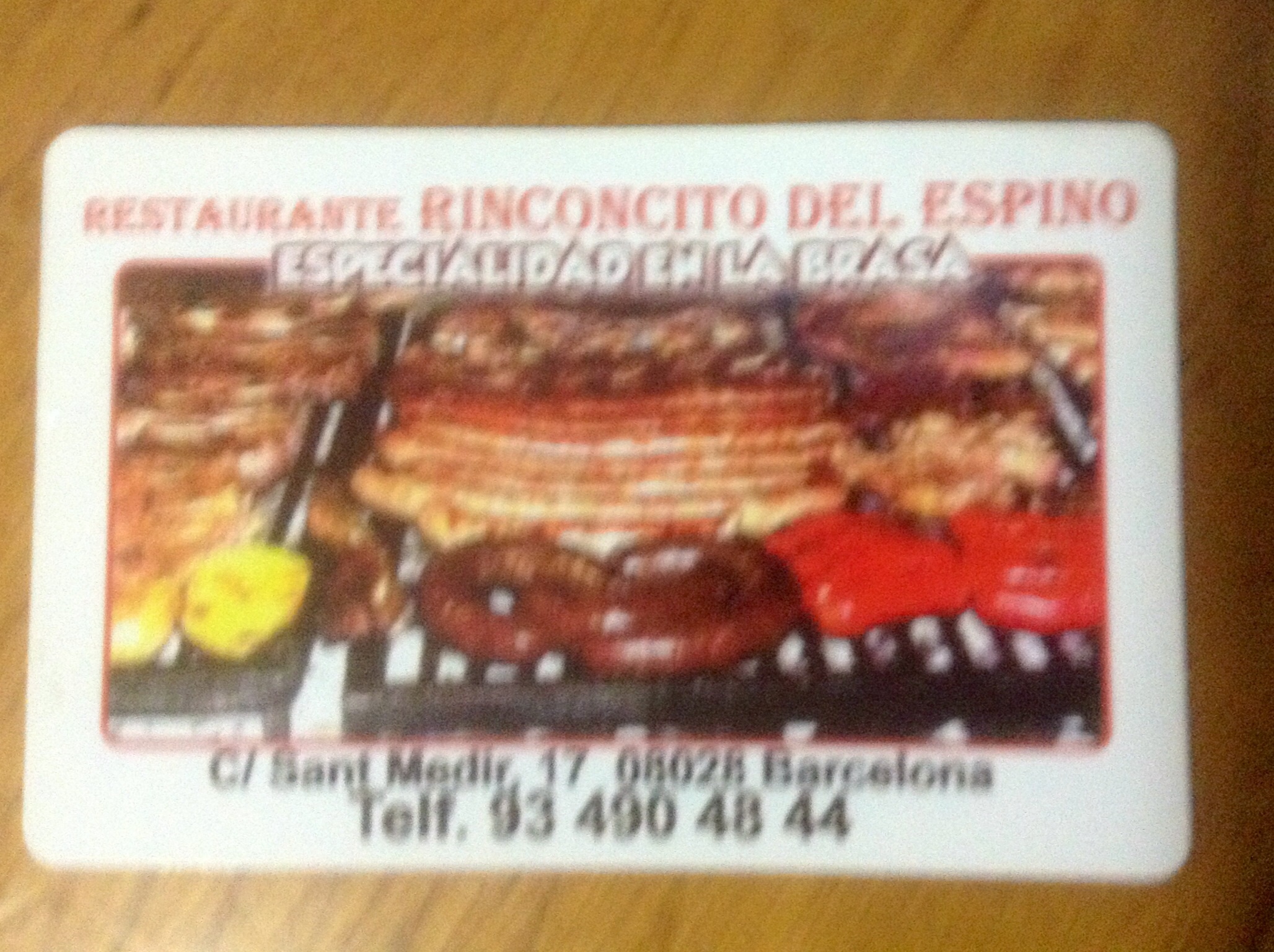 PD: por si no se subir las fotos de la tarjeta, la dirección es: Rest. RINCONCITO DEL ESPINO, C/ Sant Medir, 17, 08028 Barcelona, 934904844