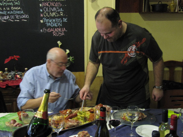 Pues resulta que el "gatito" J-Carlos, aparte de un brebaje imbebible resultado de su reciente periplo por tierras galas, nos endulzó los postres con unos higos cubiertos de chocolate, o praliné como él dice, muy ricos.