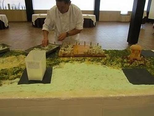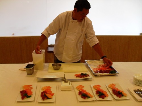 Sushi y Sashimi, en otra mesa al frente del maestro Takuzo.