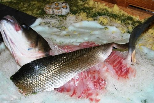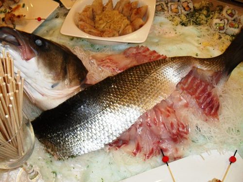 Y tengo que volver a poner esta foto, mas detallada, pero esto es una obra de arte, La Lubina Takuzo, que frescura, que delicadeza, que profesionalidad en el corte, y os puedo asegurar que estaba finísima de sabor, soy un novato en este campo, pero desde luego, me deslumbró esta estación, otro mundo dentro de nuestro mundo.