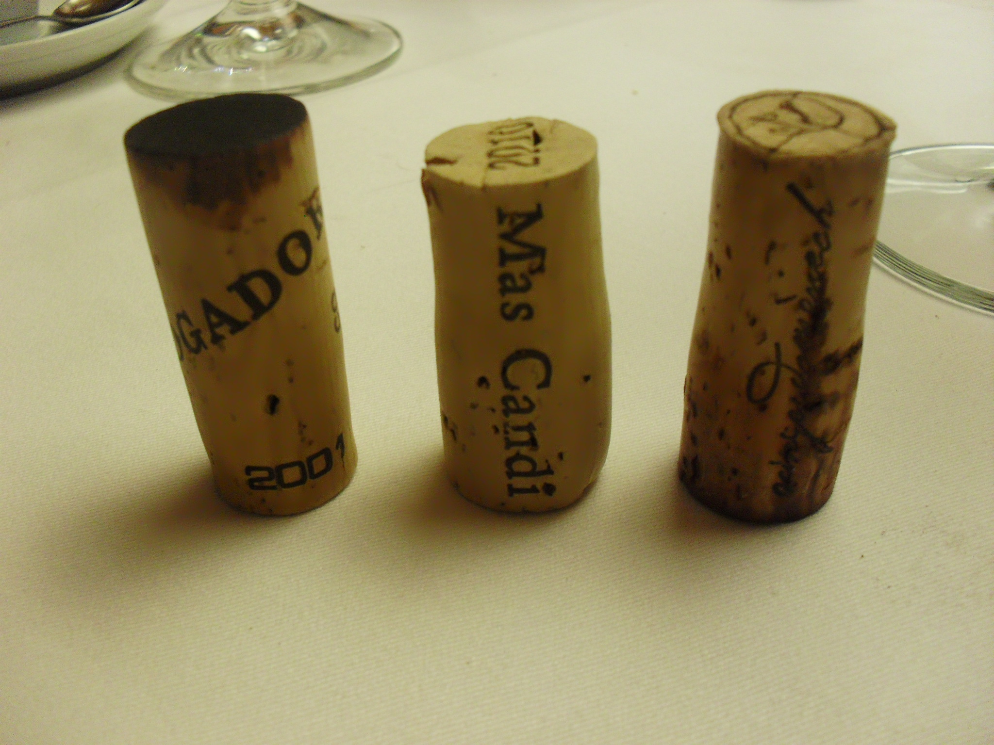 El Tapón del Mogador, impresionante su estado (más incluso que el mismo vino...); el tapón de Mas Candí (donde se elabora el Martialis de Artur y Rafa) y por fín el último, y a la vez el mejor, gran tinto del Montsant: Teixar 2004. Todo un lujo de vino!!