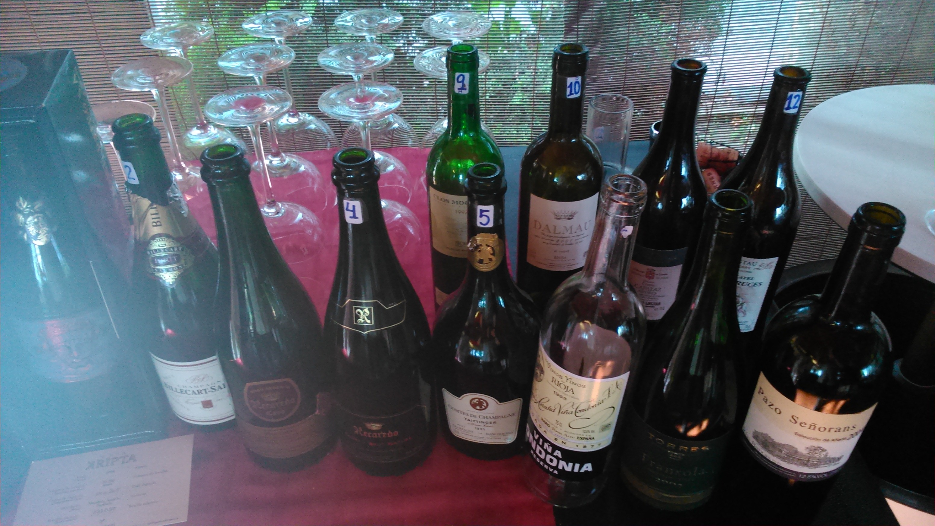 Kripta 2004,B.Salmon NV,Recaredo GR B/N 2000,Recaredo Rosado 2003,Comtes de Taittinger 1995,
