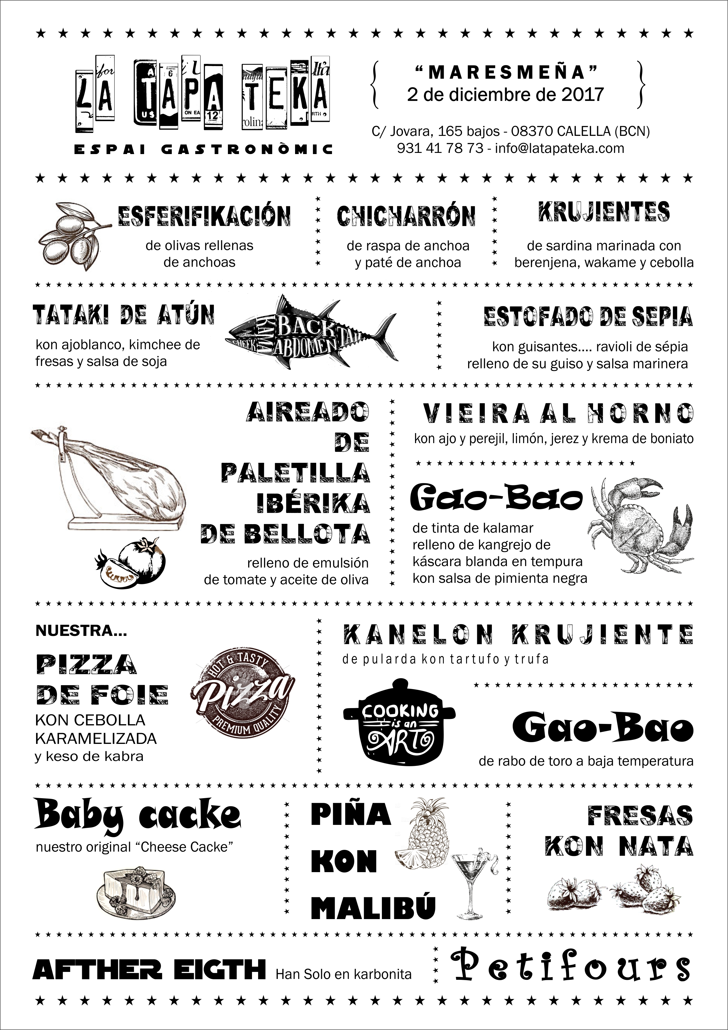 El menú tal y como lo preparan en el restaurante,es desenfadado pero ´´unico´´