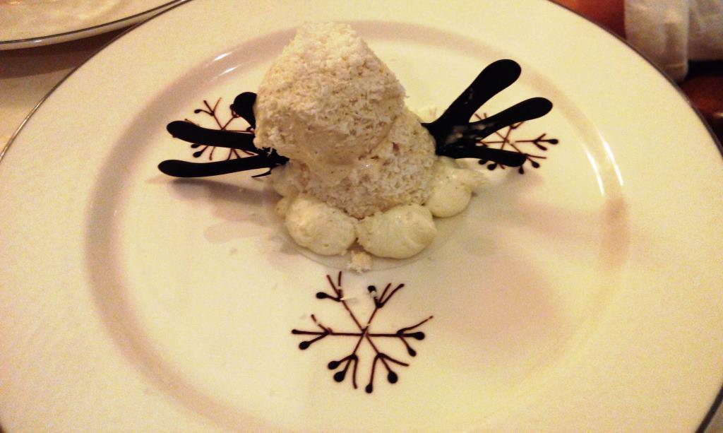 "Postre de Olaf" que me sirvieron en el "California Grill" de Eurodisney, el restaurante más caro del complejo.Cualquier parecido con la realidad es pura coincidencia. Y hablamos de un local con menús a 79 y 120 euros con camareros de etiqueta y cocineros de blanco y con gorrito y todo... Y no veo que nadie se rasge las vestiduras :-|