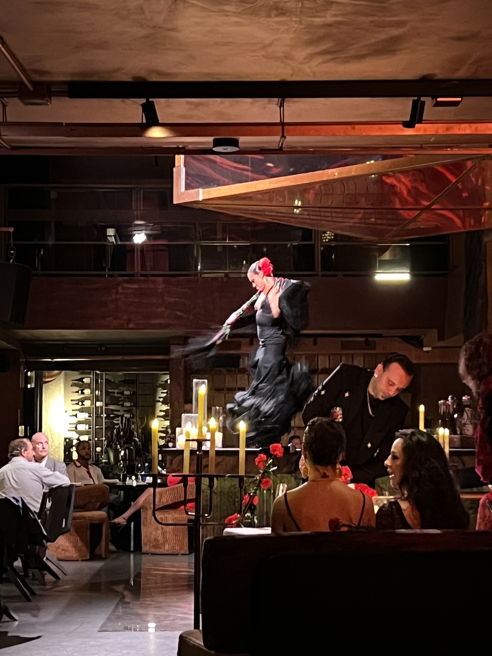 Rhudo Madrid, es un restaurante que mezcla la gastronomía con espectáculo. Escogimos ir miércoles porque tenían Flamenco (varían por día). Es típico de estos lugares que la comida sea mediocre, pero Rhudo es una excepción y la comida estuvo fenomenal.