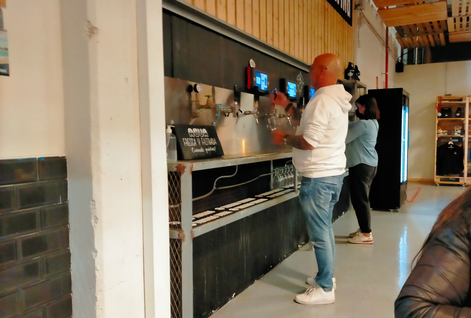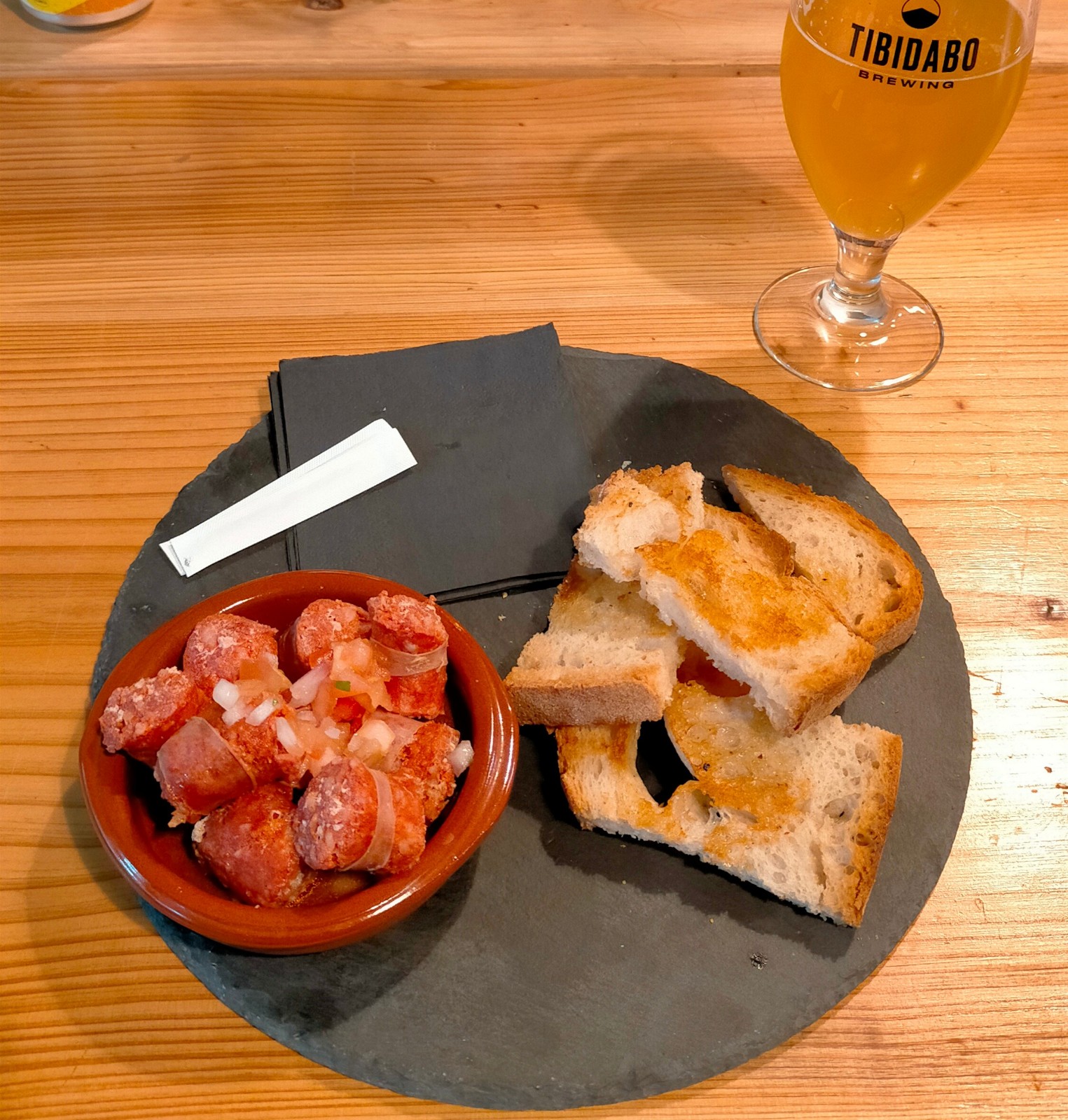 Empezamos por un local que no conocíamos, Tibidabo brewing, una fábrica de cerveza y cervecería cercana a la sala Salamandra. Nos pareció un local para gente joven, perroflautas, un sitio desenfadado donde tomar algo en bancos corridos quien guste de las cervezas artesanas. Las salchichas a la cerveza resultaron ser chorizos a la cerveza, bastante insípidos, acompañados de una lata de cerveza suavecita.