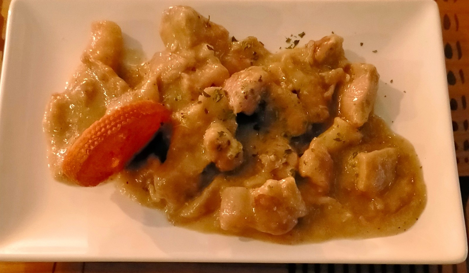 Después de un paseíto respetable, llegamos a El Cau del vermut - Centre a probar su estofado de pavo con setas a la crema de orujo. Cuando llegó el platillo al cabo de esperar un buen rato, el platillo nos resultó insípido y con un importante sabor a orujo.