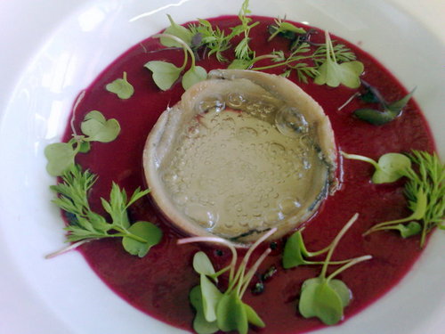 Gazpacho de remolacha con sardina marinada i cava sólido
