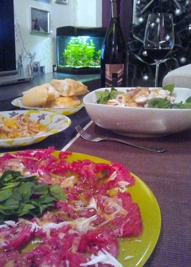 Ver mensaje de CraticuliPues eso, mas fotos, carpaccio de solomillo, cada dos por tres me lo pide mi mujer y aprovechando que ayer matamos una gallina, hicimos un poco de arroz y el resto la escabeché para hacer ensaladas.