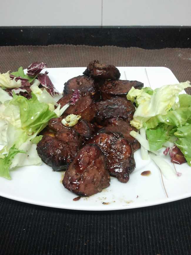 Luego haces otro mejunje con vinagre de manzana, miel, sal y pimienta y untas los medallones, los metes al horno a 180ºC y cada 5min. los vas dando la vuelta y volviendo a untar hasta que veas que estan listos.