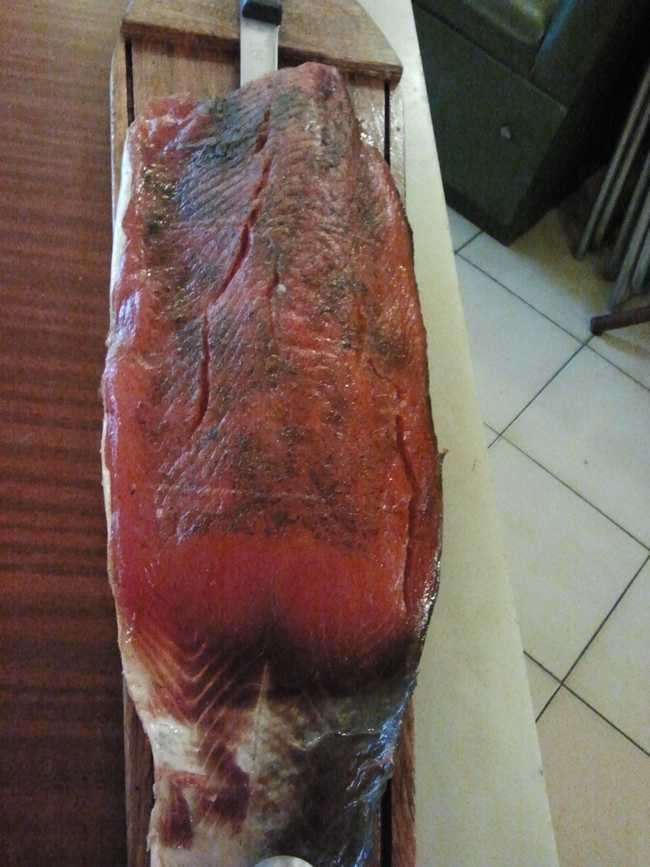 Aquí dejo el salmón ahumado que cayó ayer comiendo con los compañeros de trabajo, que conste que yo no lo he hecho (ya me gustaria).