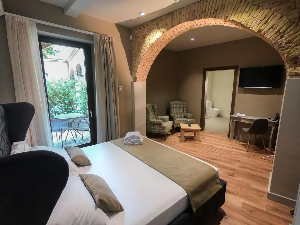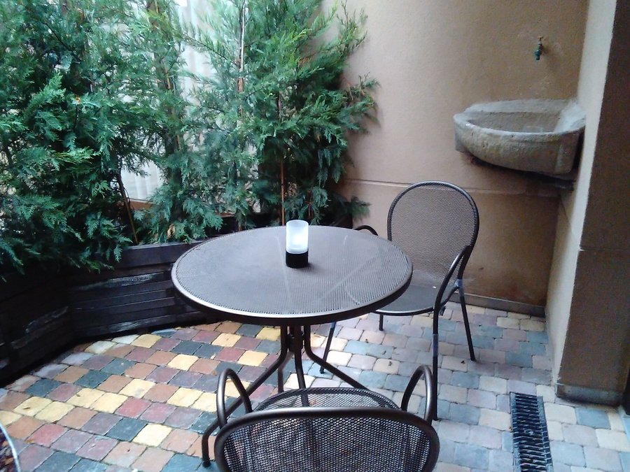 Reservamos una habitación doble superior con terraza. La habitación es amplia, aunque en la terraza interior sin vistas apenas cabe una mesa y dos sillas, y la decoración es sumamente austera. El baño es muy amplio, pero a la llegada tan solo encontramos las toallas, un secador de pelo y un bote de champú, que ni siquiera era como los del hotel. Tuvimos que pedir en recepción que al menos nos pusieran unos vasos para enjuagarnos la boca después de lavarnos los dientes.