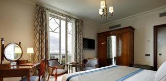 Las habitaciones varían mucho de unas a otras, nunca pasando por grandes lujos, pero si cambiando en orientación, vistas y decrepitud del mobiliario. En general: camas amplias, un armario antiguo, un escritorio, una mesita y dos sillas, componen la decoración de las habitaciones, cómodas aunque tal vez más propias de hoteles con una estrella menos. Baño bien equipado, de mármol aunque en ningún caso nuevo. Lo mejor, sin duda, los balcones orientados al mar (tarifa diferente según las vistas) desde los que se filtra una mágica luz que, como si de la varita del hada madrina se tratara, convierte esa calabaza de 4 estrellas en la carroza más lujosa que jamás uno haya visto….lujo de 7 estrellas, visión impagable….