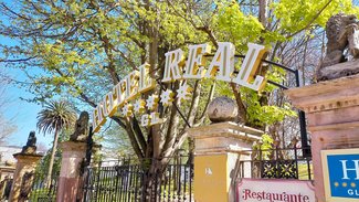 El Hotel Real se alza en la colina de Reina Victoria como si de un orgulloso balneario de principios de siglo se tratara. Blanco impoluto y techado de pizarra negra se erige por encima de cualquier otro edificio de la capital cántabra. Muchos son los lugares desde los que se puede ver el hotel, pero todavía son más los que se pueden disfrutar desde cualquiera de sus balcones, amplios y luminosos, hoy al alcance de cualquiera que quiera darse un caprichito pero antes sólo disfrutable por la corte que acompañaba a la familia real en sus veraneos.