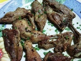 A mi me encantan fritas con buén aceite, y espolvoreadas con cebollino picadito, aunque como mas las suelo hacer es a la brasa, con una picada de ajo, perejil, romero y tomillo, y aceite claro, como las preparáis vosotros y cuales son vuestras elaboraciones favoritas ??? Como veis, os puedo invitar a codornices a la brasa, por sitio no será, jejeje Con habitas tiernas... Fritas con cebollino... |