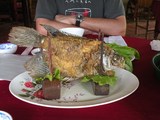 La dieta de la zona se completa con pescado, yo probé el pez oreja de elefante que preparan asado con la piel crujiente y sirven en posición vertical. Es un pez de textura agradable y fácil digestión, aunque se acompaña con... |