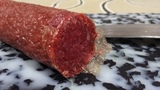 Atención al amasijo de carne y tocino. Con tripa de plástico. |