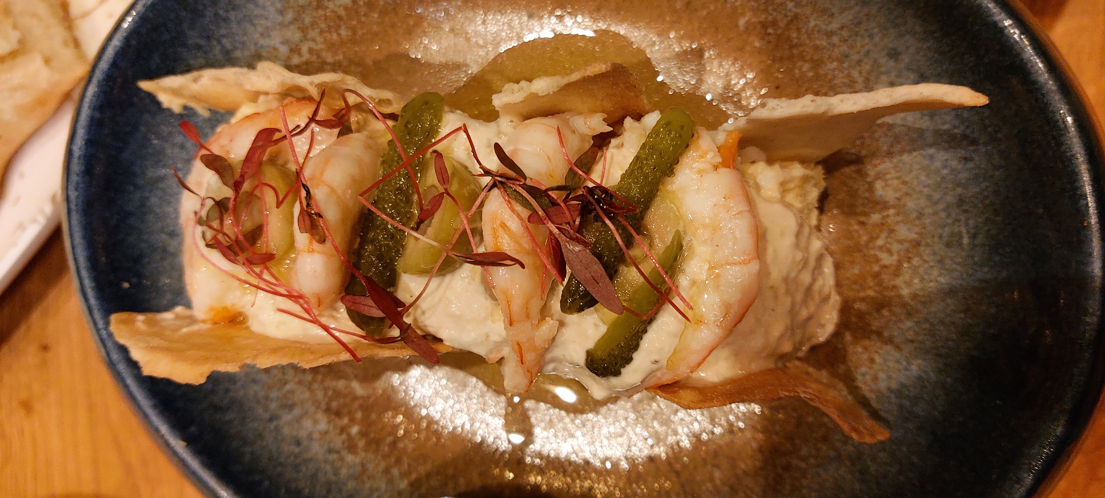 Media ensaladilla con gamba blanca de Cullera.- muy buena, con abundancia de gambas en el interior