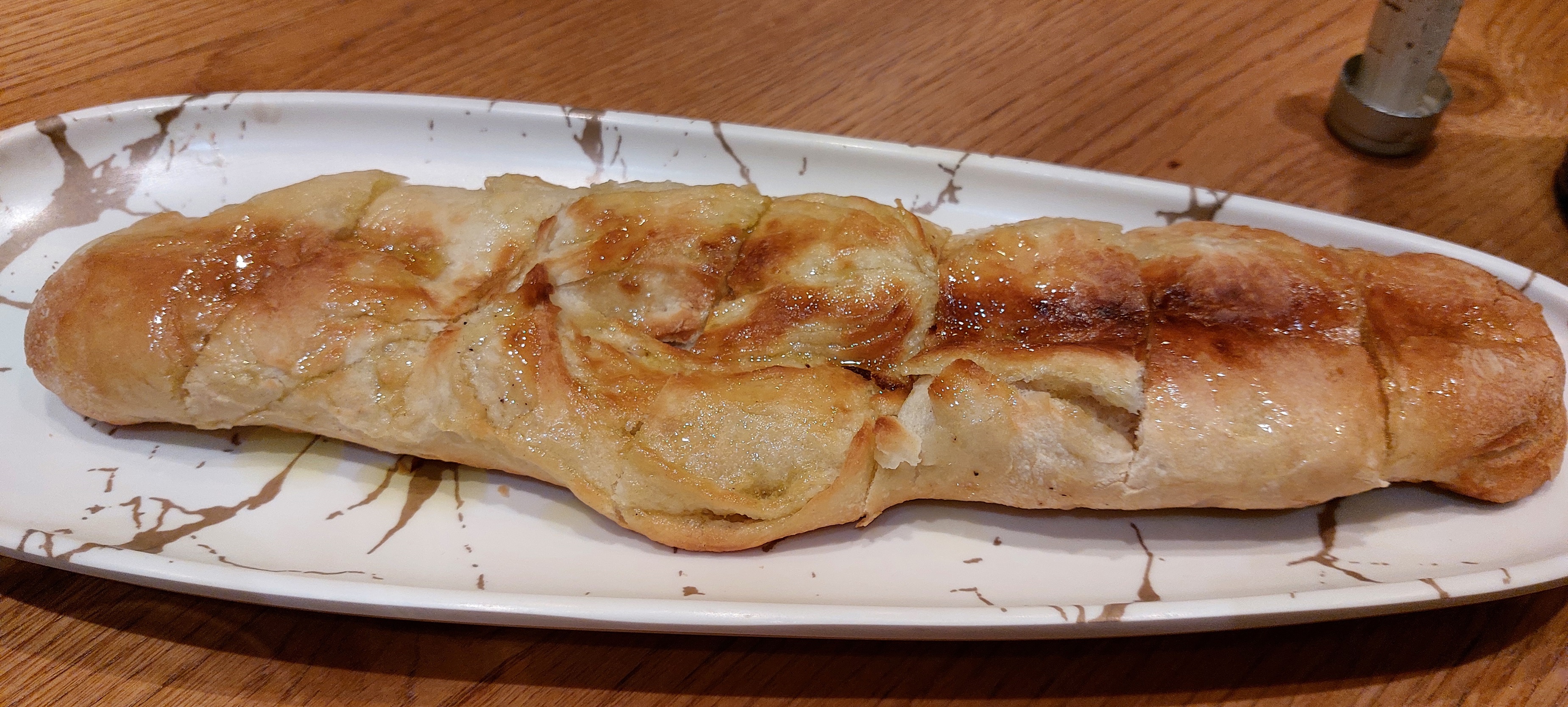 Pan.- EXCELENTE, sólo por zamparse la barra vale la pena el desplazamiento, se le vierte aceite Castillo de Canena, comerse esto es pecado.