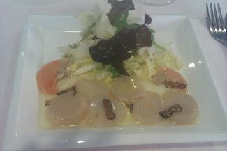Ensalada de vieira trufada, como el año pasado, espectacular, sabrosa, la textura de la vieira perfecta, sobresaliente, 12€ para dos personas.