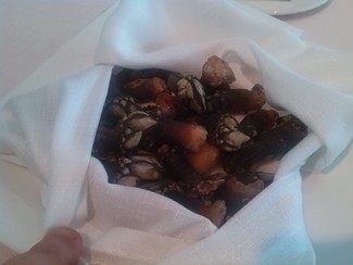 Unos estupendos percebes, siempre los pido, aquí tienen un tamaño medio-grande, siempre son los mejores que como, 18€ unos 100gramos o algo mas, ya no me acuerdo.