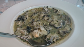Choco en tinta, que fresco, rediez, con una crema de patata riquísima de fondo, 7,5€, uno para cada uno, en total tres.