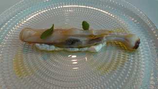 Sardina marinada sobre concasse de tomate, otro plato donde el pescado esta lo mas al natural que se puede y tiene todo el protagonismo, 11€.