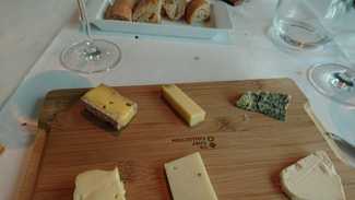 Un poco de queso para mi, seis trocitos, uno Leones, otro alemán, de Castellón, otro gallego de vaca jersey, y otros dos, uno de ellos azul, 6€, un regalo y además una copita de palo cortado, invitación de la casa.