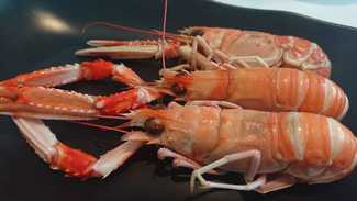 Un par de cigalitas para cada uno, de las que todavía no han pasado por cetarea, con mucho sabor, 200 gramos a 45€, 9€.