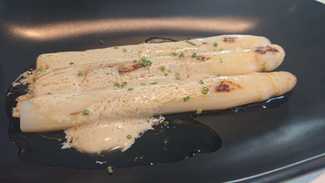 Esparrago blanco plancha y bearnesa, solo para mí, media ración, 6€ , muy ricos , buen grosor y ese punto de la cocina a baja temperatura , que deja el esparrago con una textura magnifica.