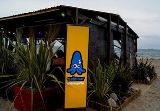Sábado noche, prácticamente lleno, ambiente joven, música chumba-chumba (¿trance?). Servicio joven de trato familiar y bastante lento. Carta a base de tapas y bocadillos principalmente (http://www.chiringuitocalamar.com/gastronomia). La que nos dieron estaba mitad en castellano mitad en francés... Menos mal que uno de los comensales nos la tradujo. No vi la carta de vinos, si es que la hay. Decoración pseudo-caribeña. Iluminación escasa. Mobiliario incómodo. Manteles con parte de la carta impresa. Vasos de plástico. Servilletas de papel. Cubertería y vajilla de batalla. Sirven mojitos, caipirinhas,...