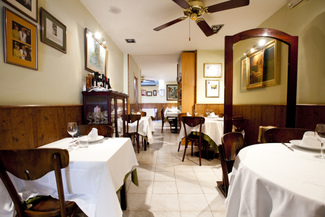 Pequeño restaurante en un lateral de la Pl. Osca de Sants. Una decena de mesas más bien pequeñas y con separación escasa distribuidas en un pasillo y un pequeño comedor al fondo. Decoración clásica en tonos oscuros e iluminación justita. Menaje correcto. Servilletas de papel para el menú y de tela para la carta. Copas muy sencillas, aunque disponen de algunas algo mejores, que no nos ofrecieron ni pedimos. Servicio correcto, algo lento y disperso. Disponen de un menú por la noche a 16,90€ (no sé si el precio incluye el IVA). Carta bastante amplia con platos tradicionales. Carta de vinos con predominio de referencias comerciales y algunas interesantes a precios por debajo de x2. Servicio consistente en descorche (la cápsula, cortada por encima del gollete), prueba y primer llenado. Los precios indicados en la carta no incluyen el IVA. Los que aparecen más abajo, sí lo incluyen.