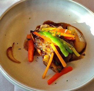 - Carrillera al horno con reducción de Oporto - De cerdo. Presentada entera. Muy tierna. Algo falta de intensidad para mi gusto.