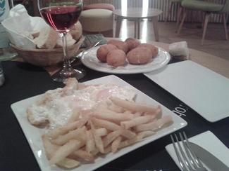 Clásicos en platos, huevos fritos con puntillas, filete de ternera o merluza a la romana.